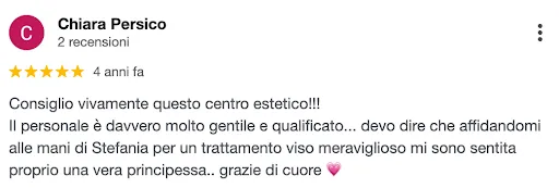 “... un trattamento viso meraviglioso mi sono sentita proprio una vera principessa.. grazie di cuore 💗”