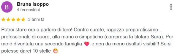 “Per me è diventata una seconda famiglia… e non da meno risultati visibili! Se si potesse darei 10 stelle”