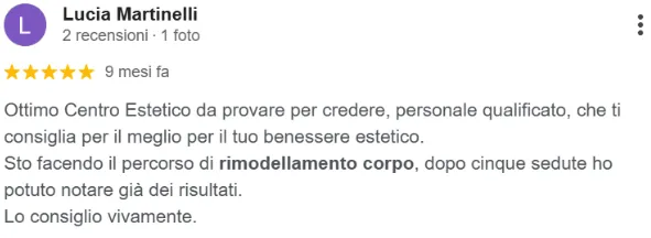 “Ho iniziato un percorso di rimodellamento corpo… sto ottenendo i risultati che speravo. Consiglio vivamente a tutti”